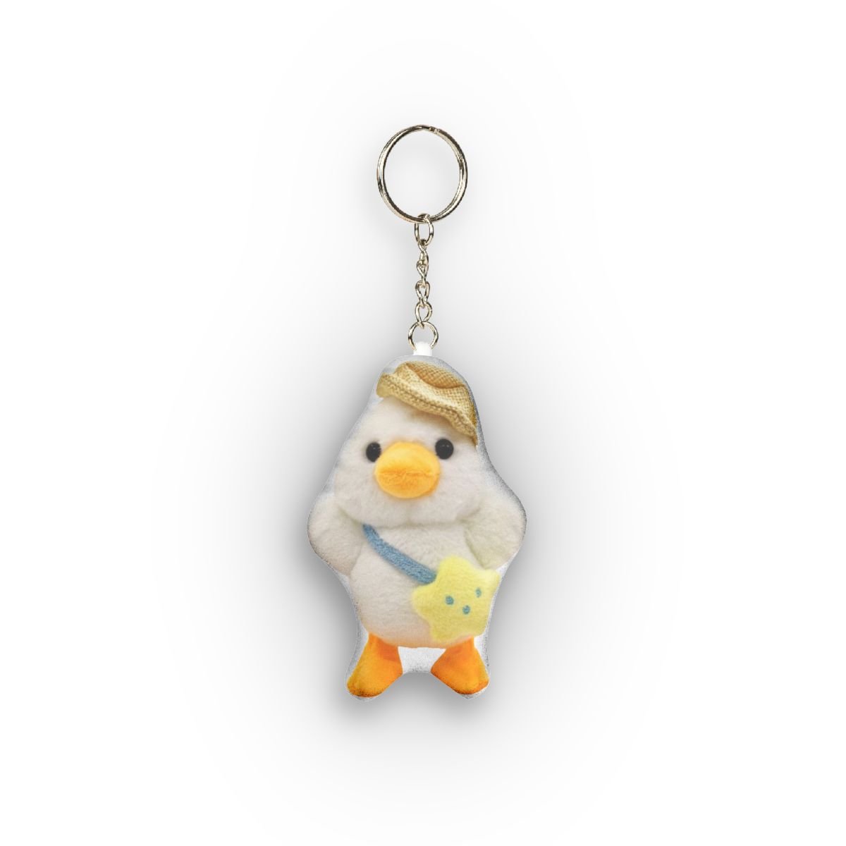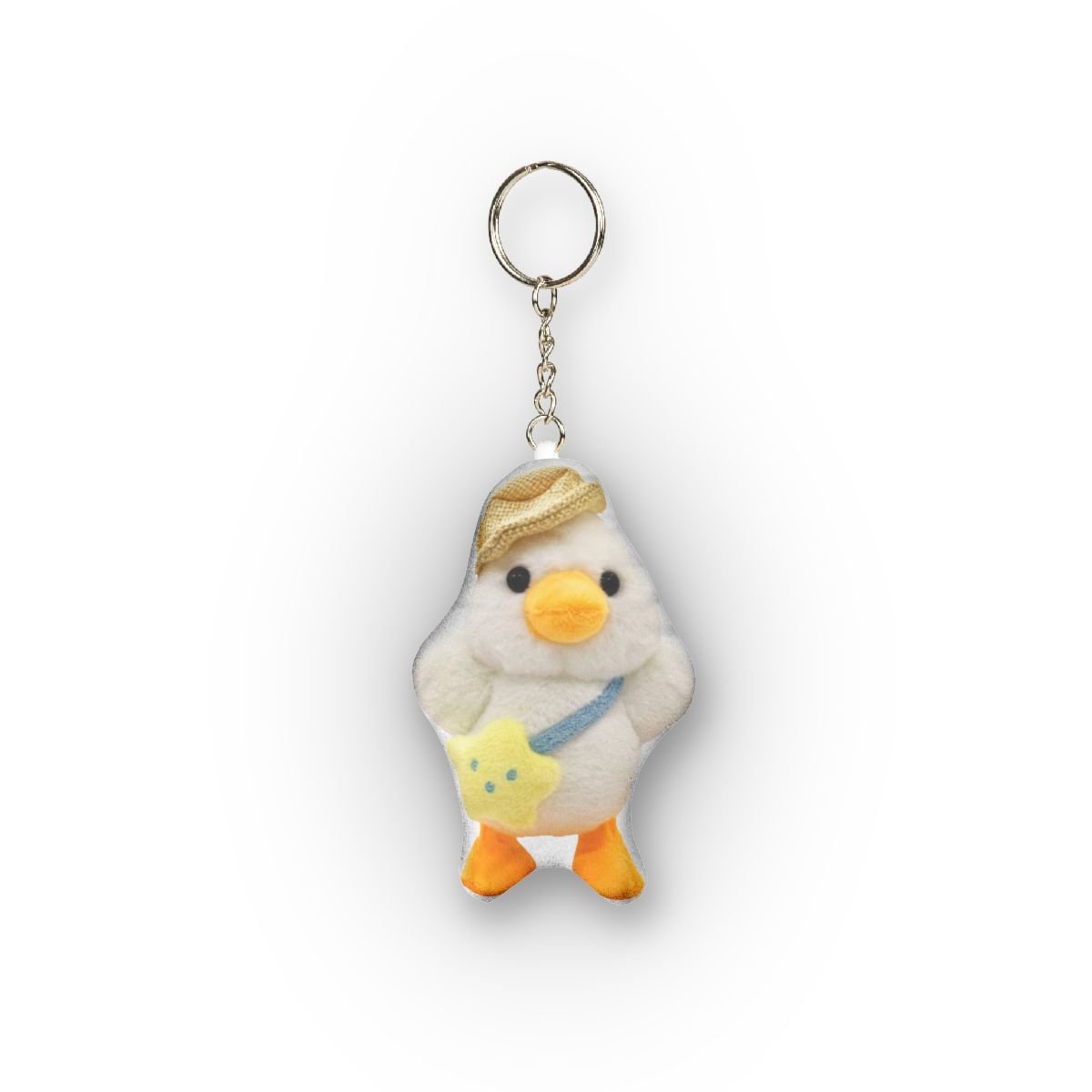 Cute White Duck with Hat and Star Bag Plush Shape Mini Plush Keychain